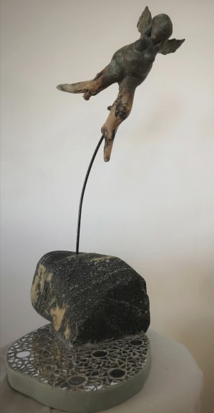 Leire, tre, papir, stein, metall og speil 28x52x22cm